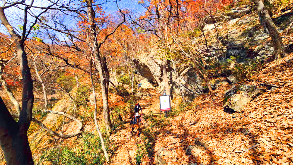 하산길은 경사가심하고 계단이많은 내리막에는 많은 조심을해야한다.