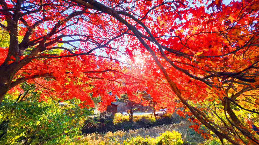 주차장옆 단풍에 다시한번 감탄하고