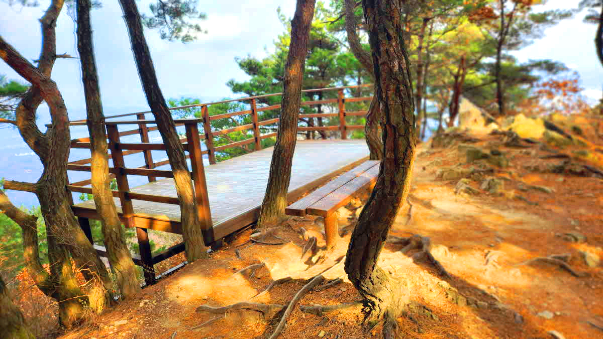 우측 비스듬한 오름길로 조금가다가 의자을 지나고