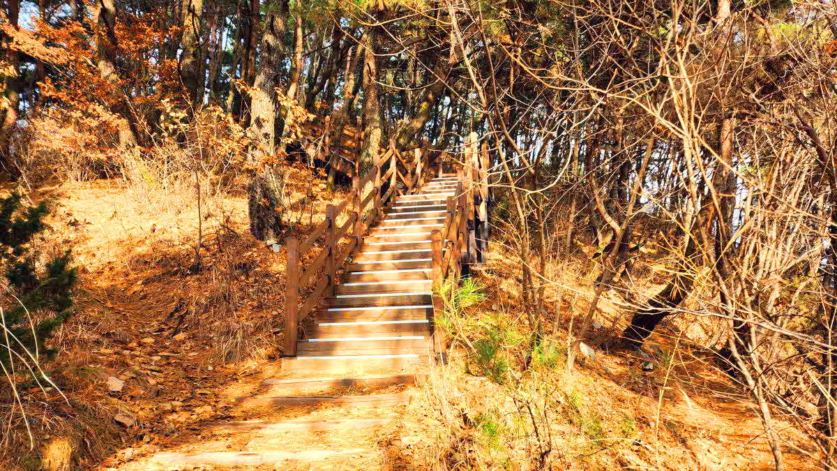 좌,우측 우회길에서 바로계단으로 오르며는