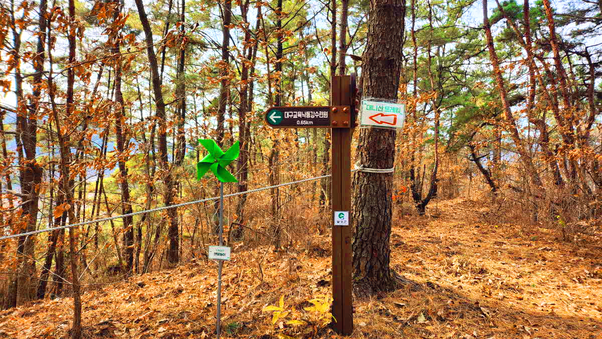 대니산 트레킹코스 방향표시로가며는 된다.