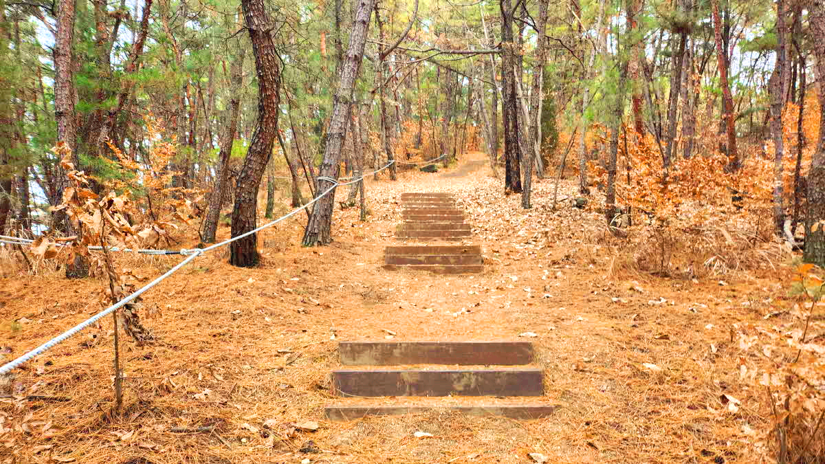 다시 나무계단으로 오르막을 오른다.