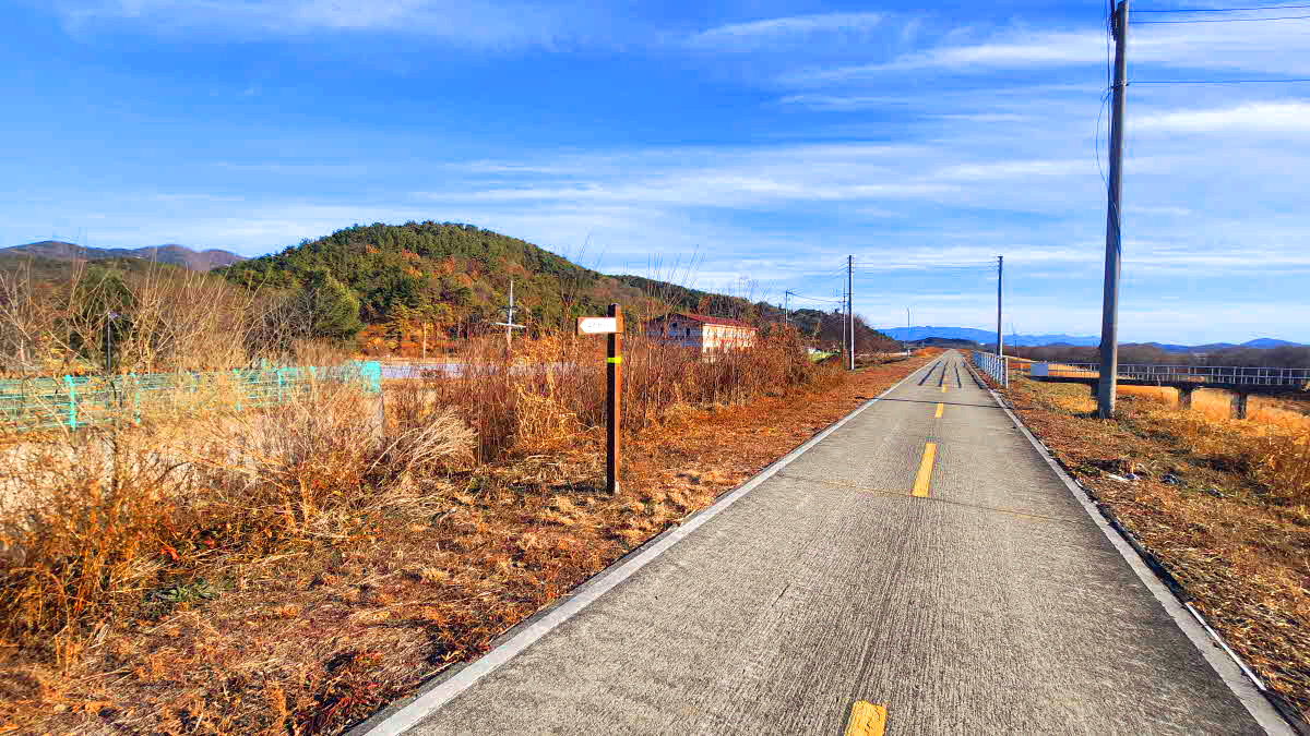 삼거리에서 우측 제방따라 자전거길로 가며는 수련원 울타리때문에