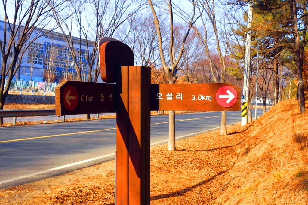 이정표 오설리 3km
