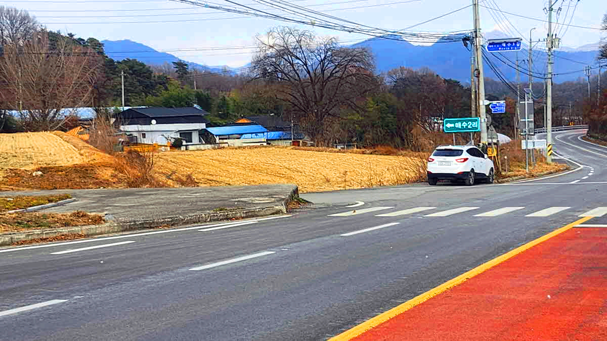 금수강산면 방향으로 새월마을앞 버스승강장이 보이고