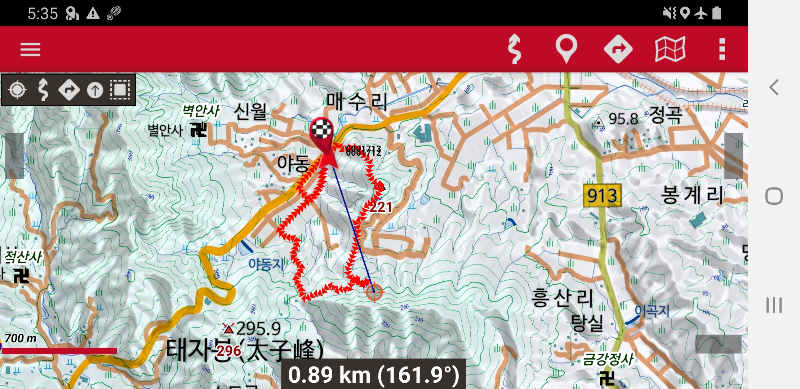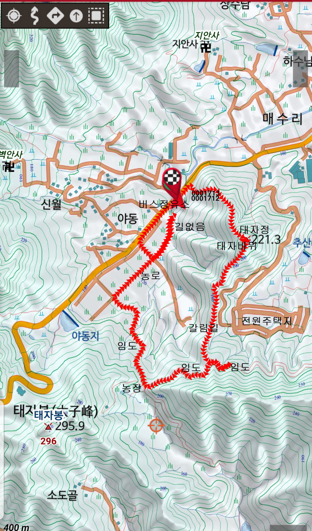 매수2리(새월)마을앞 - 태자봉 등산로입구 - 목계단 - 지능선 - 태자정 -