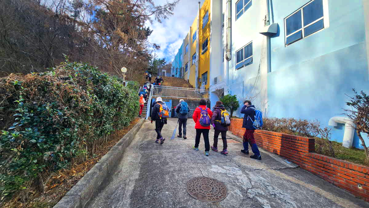 기장 청소년수련원옆으로 계단을 올라가면서 산행을시작한다.