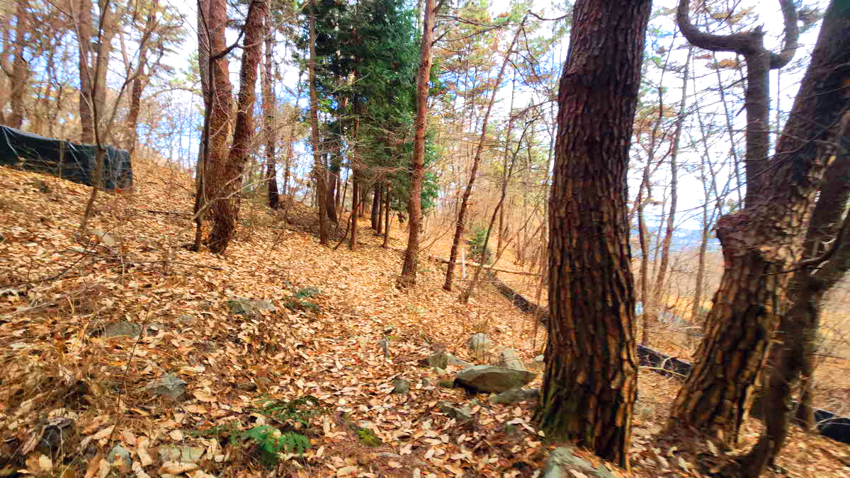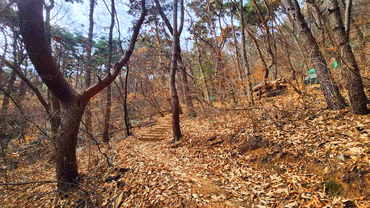 수련원 쪽에서 올라오는 길을 하나더만나 산자락으로 오르며는
