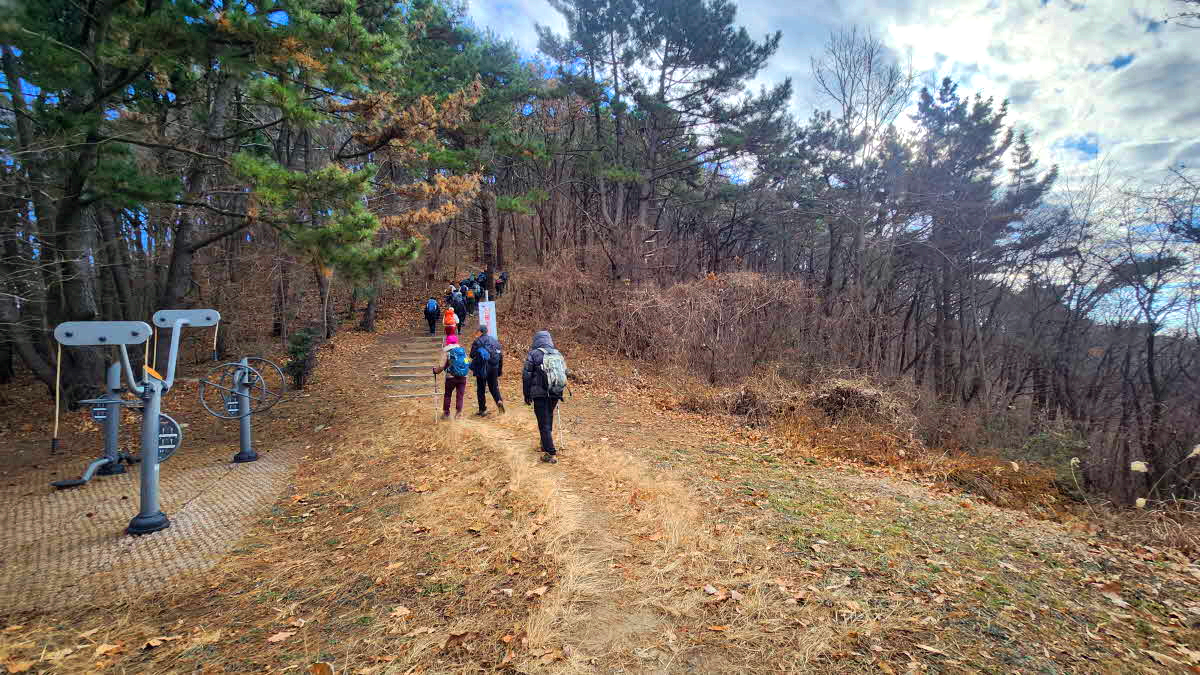간이 운동시설들이있는곳을 지나 목계단을 오르고