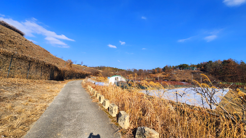 문산 정수사업소 방향으로 언덕을 올라가며는