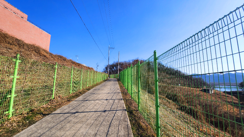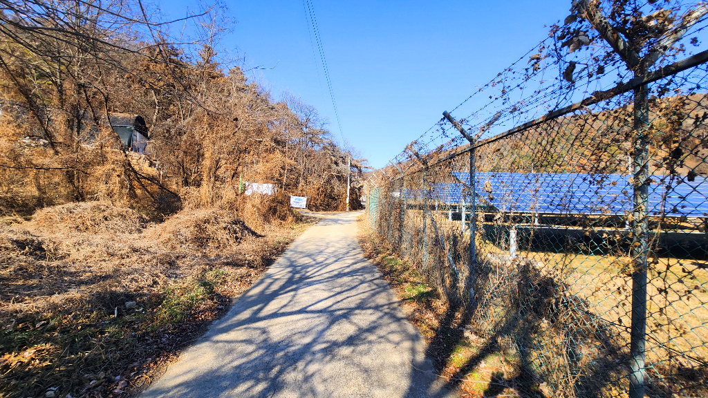 문산 정수장 울타리와 취수장 울타리 사잇길로