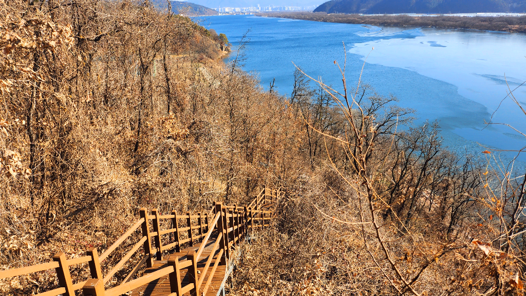 긴 데크계단을 내려가면 중간쯤에 전망대가있고
