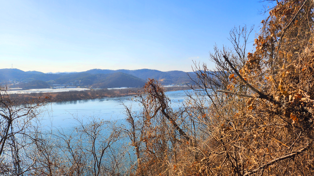 문산 취수장방향으로 돌아내려가 작골 갈림길에서 문산 전망대를 거처