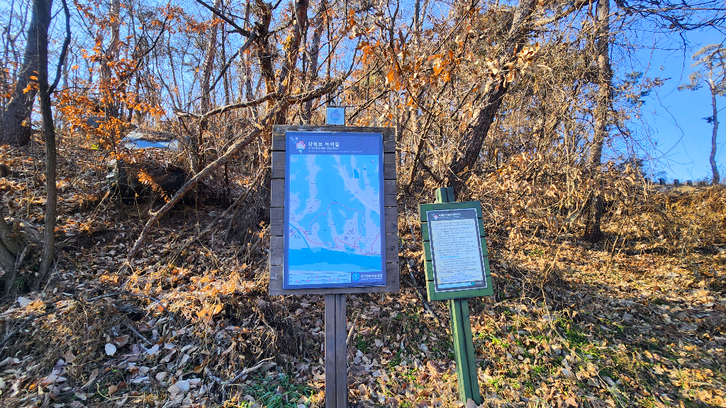 산길입구에 강정보 녹색길 지도와