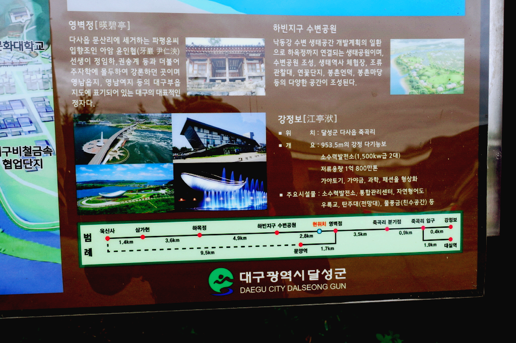 아래 강정보 녹색길 구간 거리표도있다.