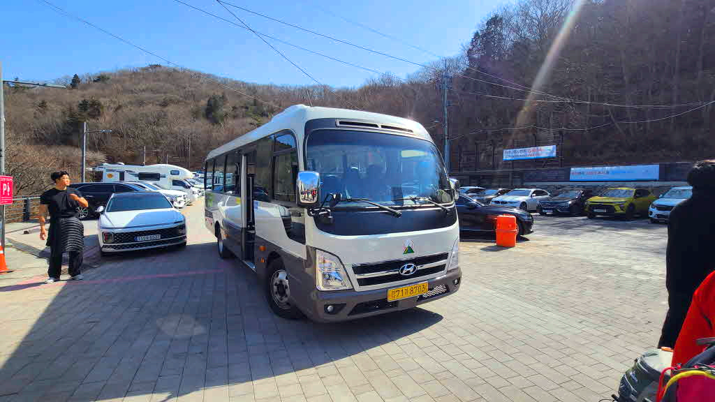 복곡주차장으로 하산한 화원들이 차을타고 도착하고