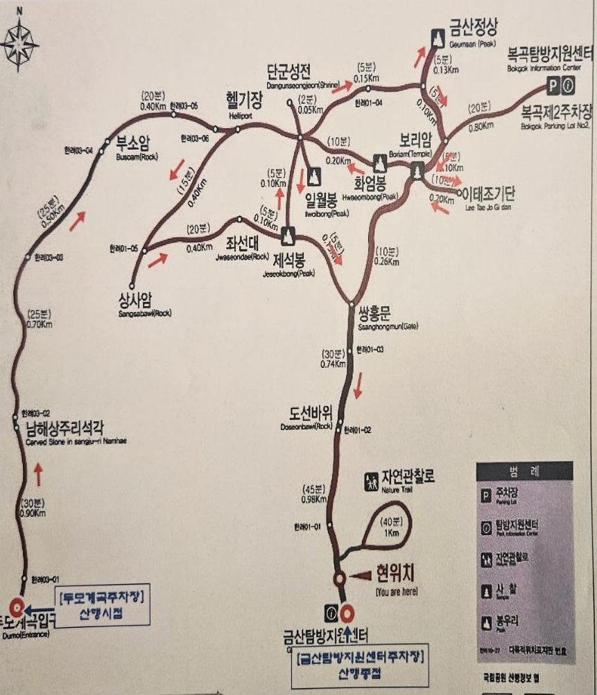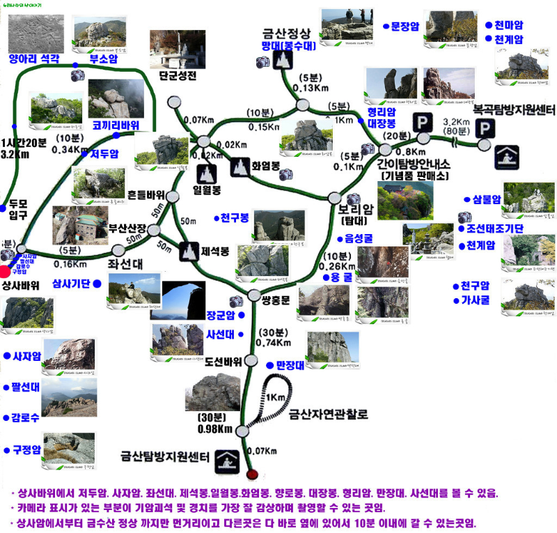 마을버스 - 보리암 매표소 - 보리암종무소 - 보리암- 금산정상 - 금산산장 -제석봉-