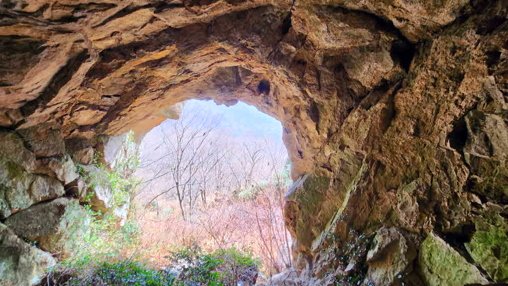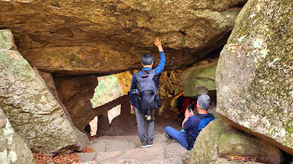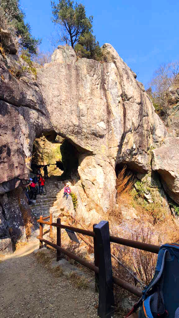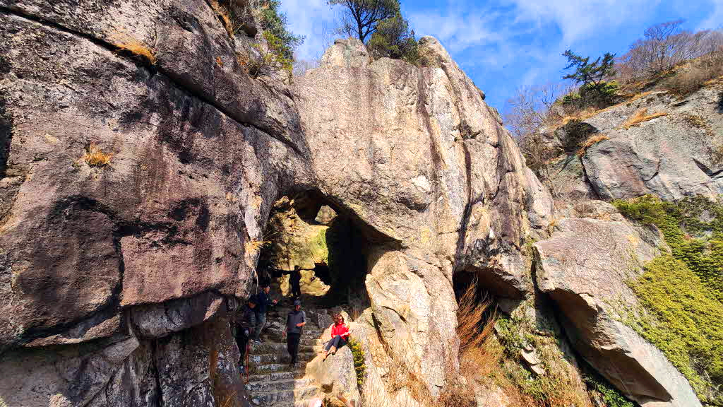 바위사이 돌문을 통과하는데