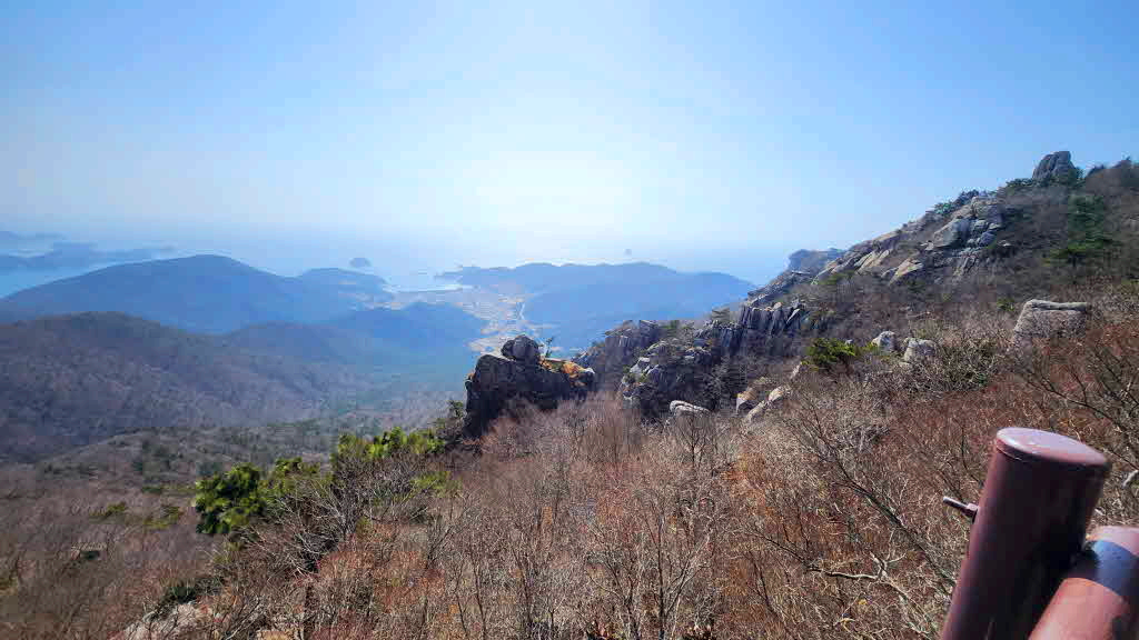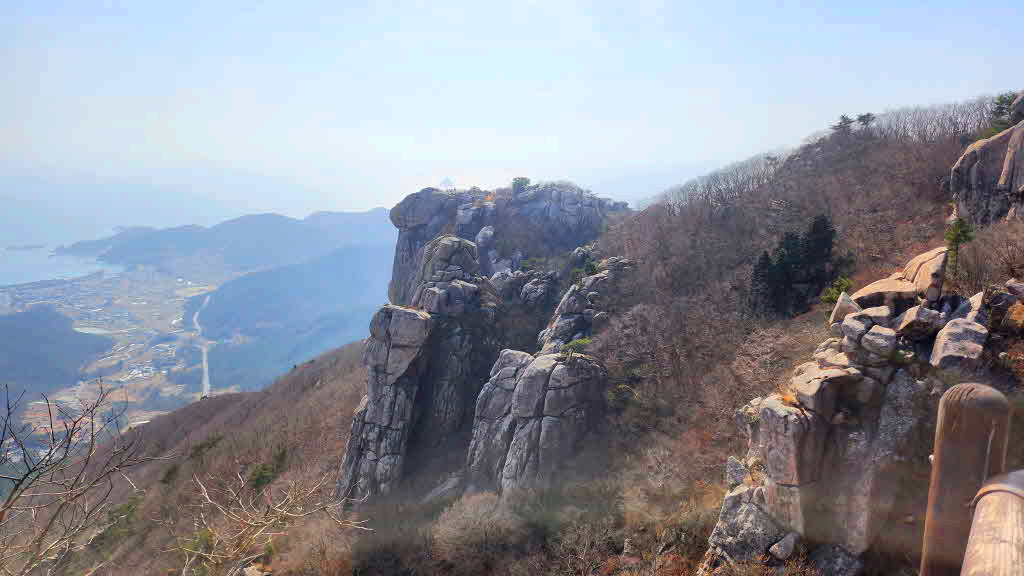 정상부에는 수많은 암봉들이 솟아 남해의 작은 금강산이라고도한다.