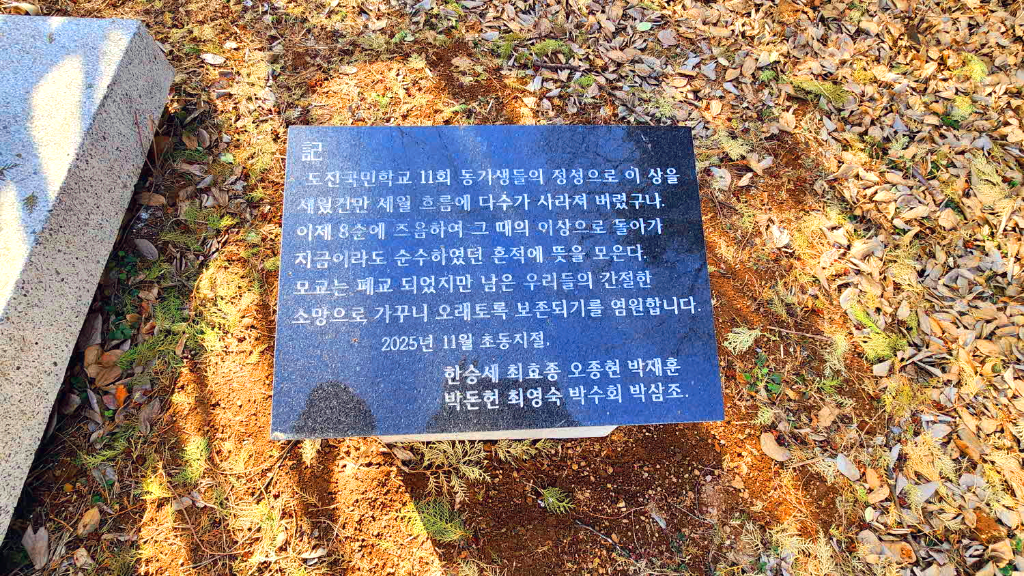 2025년 지난해 11회 동문들이 학교을 보존하기을 기원하는 빗돌