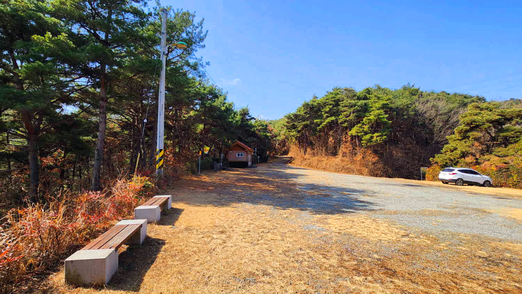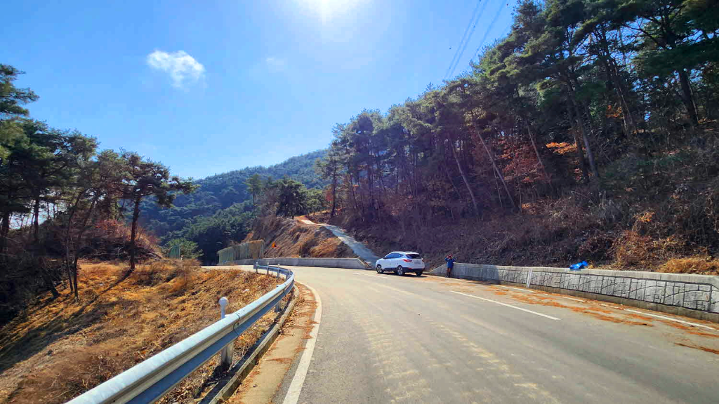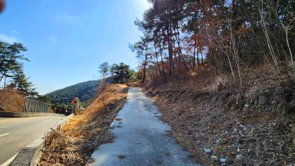 부례방향으로 조금내려가며는 우측 묘지로 올라가는 산길도있고 ,