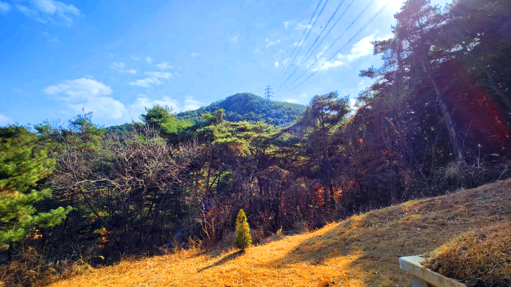 우측에 고압전선한전철탑이 있고