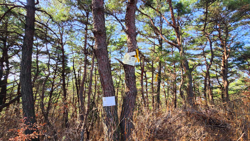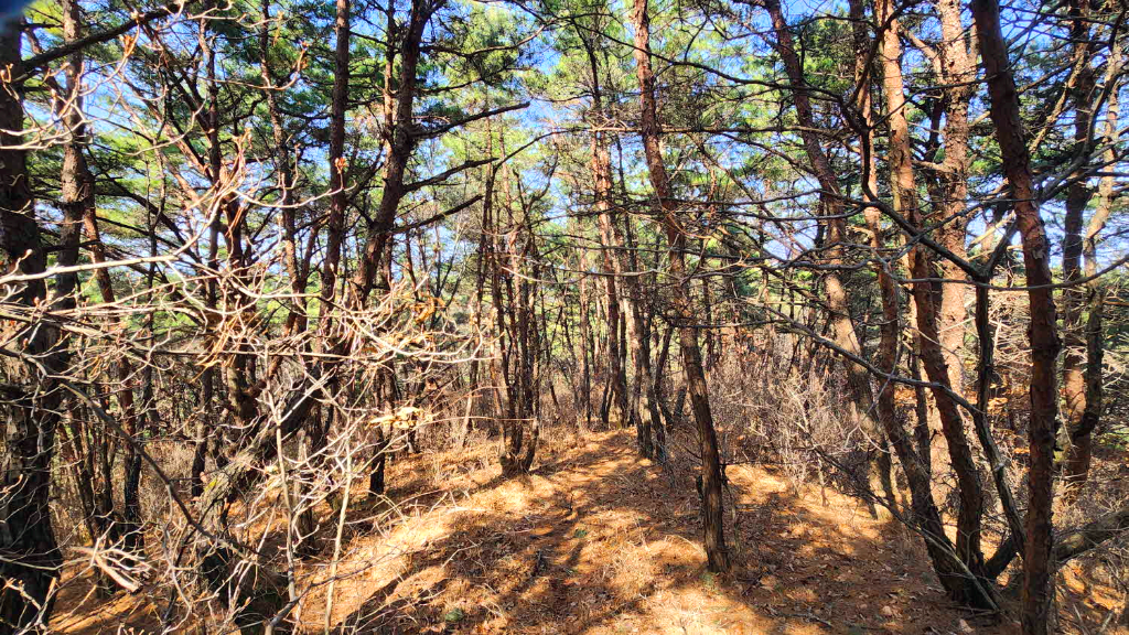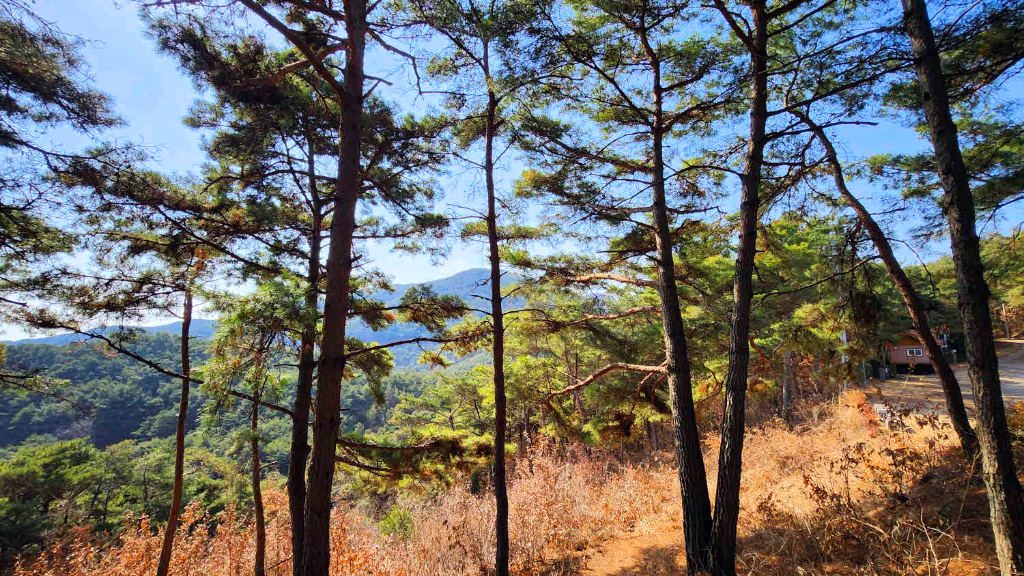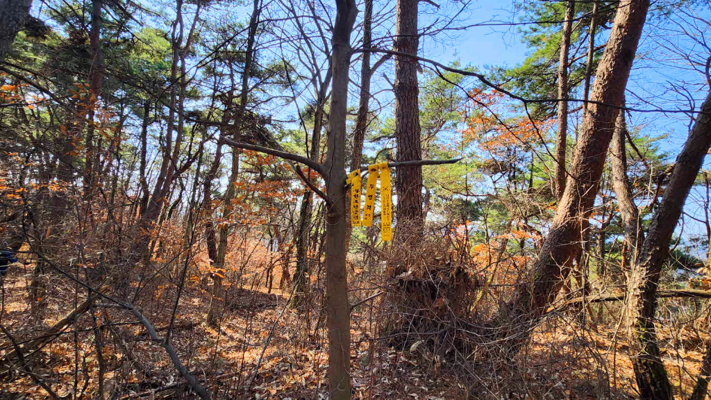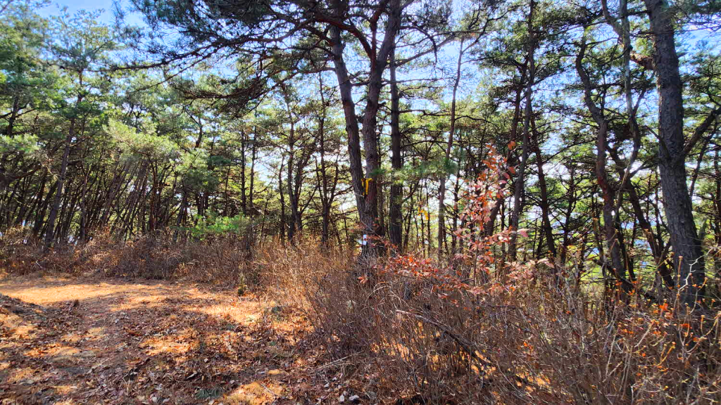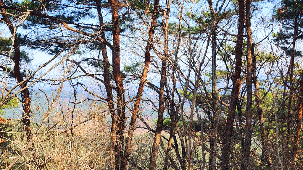 나무가지사이로 오늘 가야할 청룡산 정상이 바라보이고