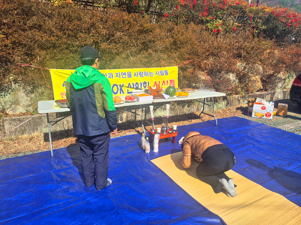 산장입구도로아래 좌측에 2주차장에서 시산제을 지내기로하고