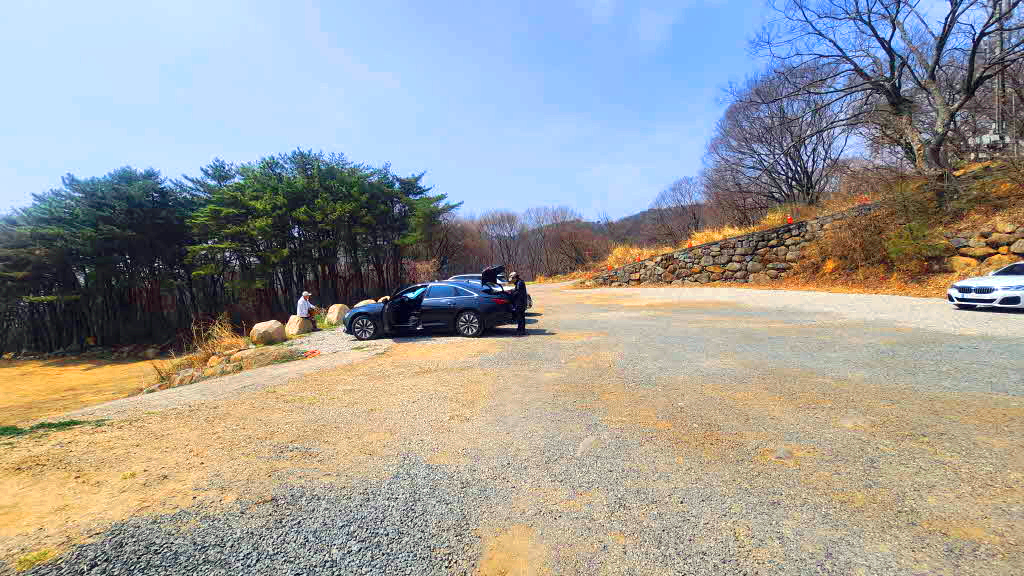 kt 중계탑 100m 전방의 헬기장과 주차장이고 간이화장실도 보인다.