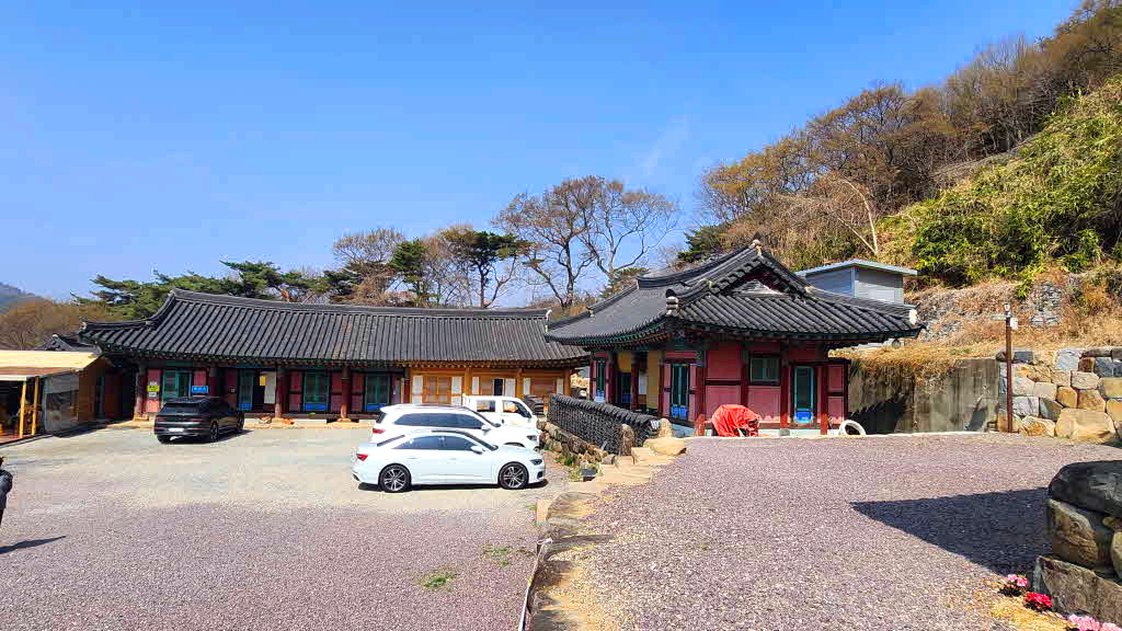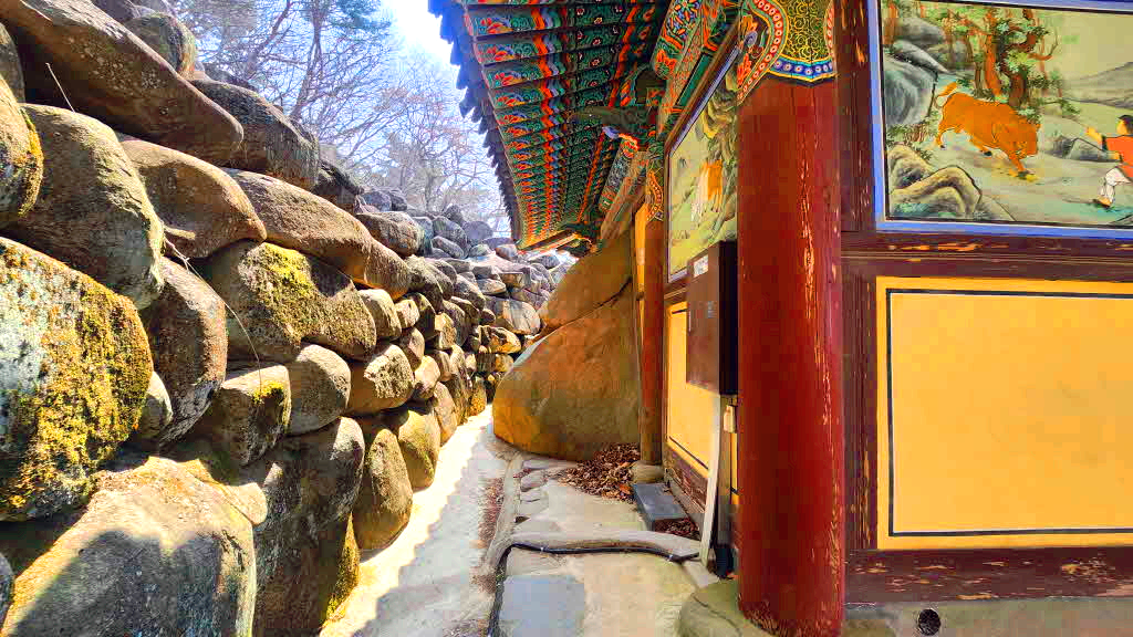 뒷면벽은 자연바위을 이용하여 건축하였다.