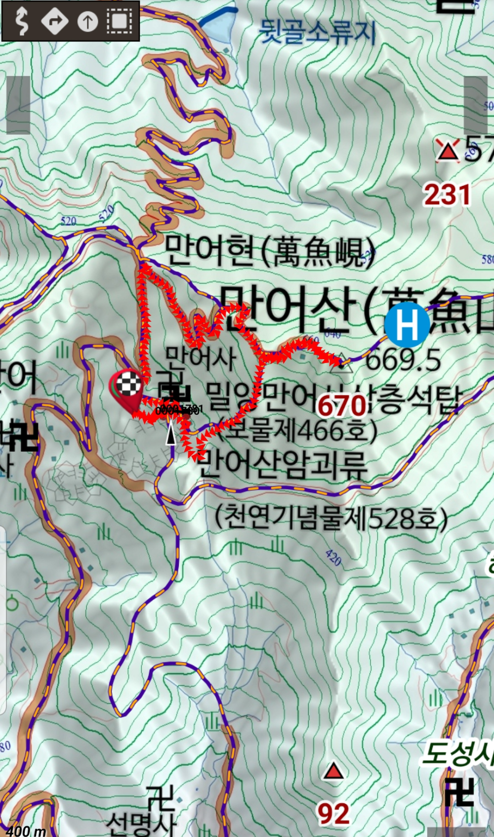 kt 중계탑 - 만어산정상 - 빽 - kt 중계탑- 헬기장 - 지름산길로하산 - 만어사 - 주차장